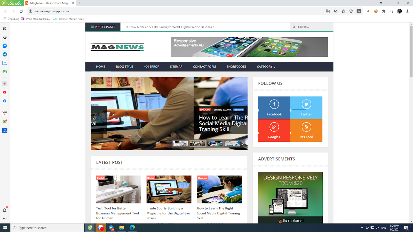 Tiếp tục với chiến dịch chia sẻ Template Blogspot Bản Quyền Miễn Phí, thì hôm nay mình lại chia sẻ cho các bạn một template tin tức có giao diện cực đẹp nữa, đó là template Mag News.